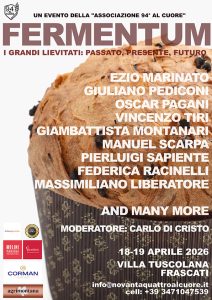 Fermentum che si terrà il 18 e il 19 aprile, è, nelle intenzioni degli organizzatori e sin dal suo concepimento, un “luogo” che vuole diventare un appuntamento fisso per gli appassionati ed i professionisti dell’arte bianca, il più qualificato motivo di incontro e dibattito sui temi di volta in volta ritenuti meritevoli di attenzione e studio.