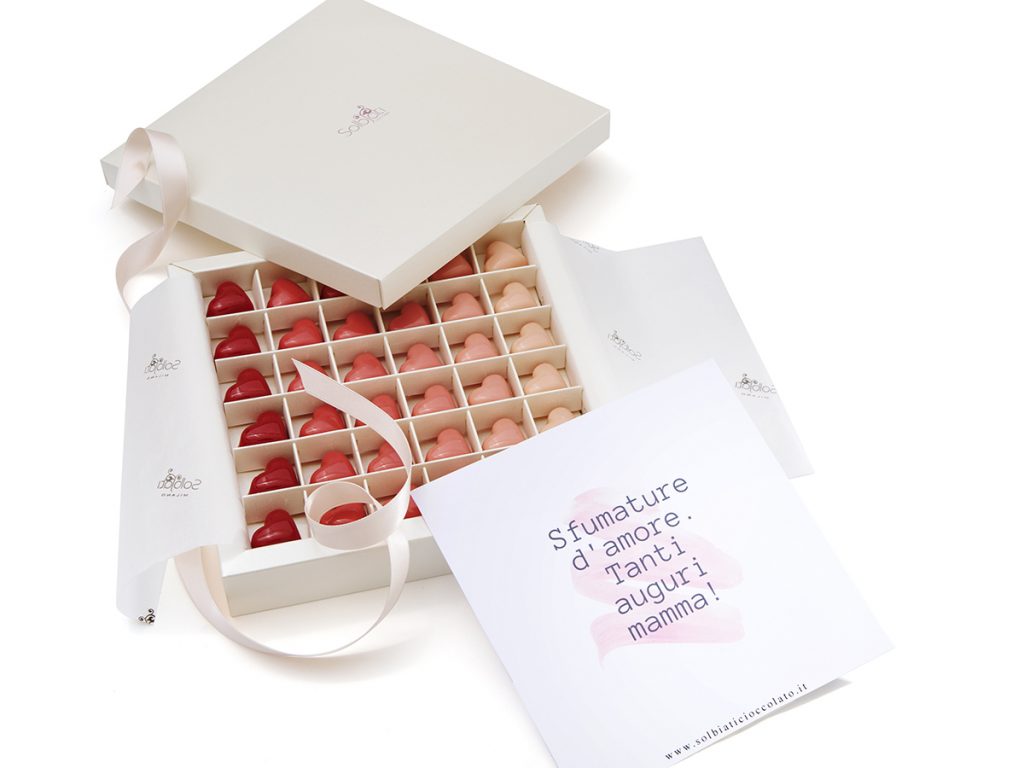 L’estro creativo di Simona Solbiati non si ferma mai. Le Mum Box targate Solbiati Cioccolato rappresentano il regalo perfetto perché racchiudono al loro interno una varietà di sapori per poter assaporare ogni sfumatura dell’amore che varia anche nelle forme, è possibile infatti scegliere tra le classiche praline, piccoli boccioli di rosa e cuori dalle diverse dimensioni.