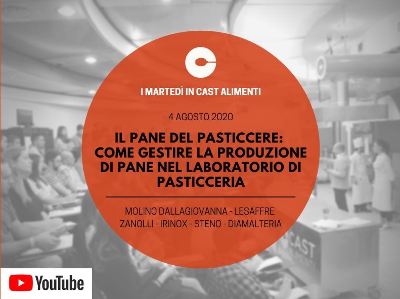 Prima iniziativa di questo nuovo anno di collaborazione, l’incontro digital nell’ambito del calendario de “I martedì in Cast Alimenti” dal titolo “Il pane del pasticcere: come gestire la produzione di pane nel laboratorio di pasticceria” in programma il 4 agosto alle 17.00 in diretta sul canale YouTube di Cast Alimenti.