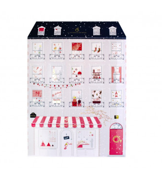 Come calendario dell’Avvento per il Natale 2017 La Pâtisserie des Rêves ha scelto di proporre la riproduzione di un tipico palazzo parigino in stile haussmanniano con 24 finestre o porte ricche di tesori tutti da scoprire. All’interno ci sono croustilles, sablé, cioccolatini, torroncini, caramelle al fior di sale da gustare giorno per giorno fino alla Vigilia di Natale.